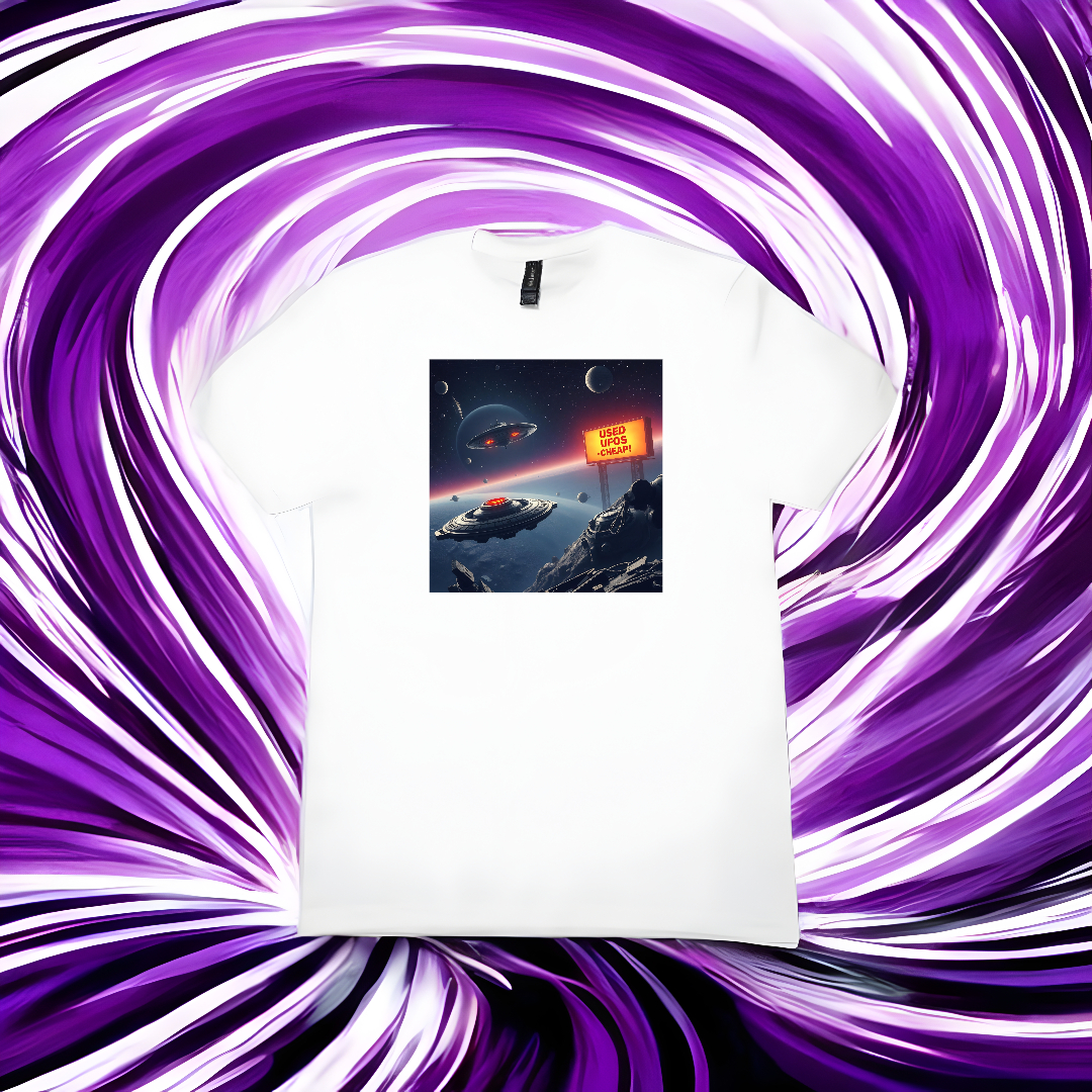 A Cosmic Scrap v2.0 design a desAIgn szimuláció legpimaszabb részlete: lebegő roncsok, csillagközi hirdetőtáblák és a felismerés, hogy a kapzsiság univerzális. Ez a póló nem csak egy kép egy roncstelepről; ez egy bizonyíték arra, hogy a Thermal Fusion technológia képes maradandót alkotni ott is, ahol a fizika már rég feladta. A print molekuláris szinten fuzionál a szövettel, így tartósabb marad, mint bármelyik "olcsó" UFO hajtóműve a képen.