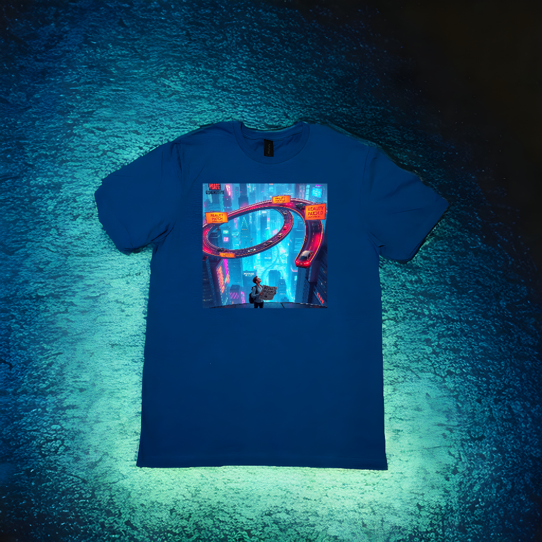 A Reality Patch ∞ Loop a legújabb frissítés a világunk szövetéhez. A design a Mechamotion Archive mérnöki látomását és a Glitchware Drive digitális szürrealizmusát ötvözi: egy olyan várost, ahol az autópályák végtelenített Möbius-szalagként tekeregnek a neonfényű felhőkarcolók között. Miközben a kezünkben tartott újságok a fizika haláláról cikkeznek, a felettünk lebegő óriásplakátok már az új valóság-foltokat (patches) hirdetik. Ez a póló nem csak egy kép; ez egy bizonyíték arra, hogy a rendszer átírható.